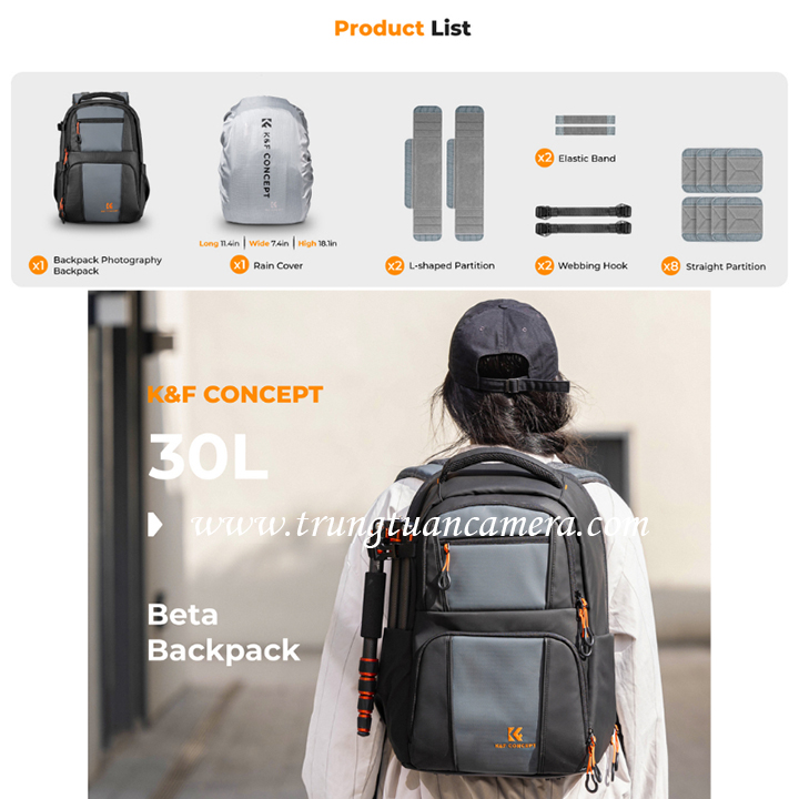Ba lô máy ảnh K&F Concept Torba 22L chống va đập - KF13.134/V1/V2/V3/V4 đủ màu