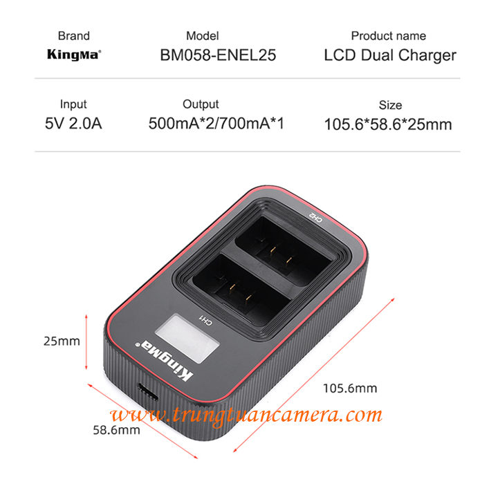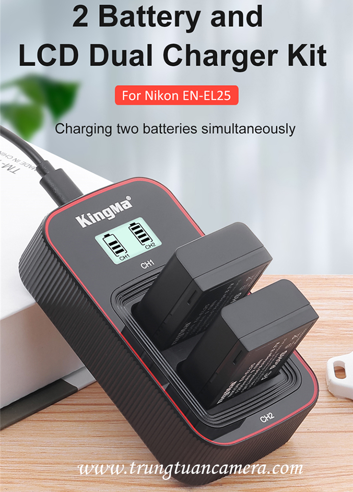 Bộ 2 pin + 1 sạc đôi Version 3 Kingma for Nikon EN-EL25 dung lượng 1350mAh - Bộ pin sạc máy ảnh thế hệ 3 chính hãng Kingma có sẵn hàng tại Trung Tuấn Camera - Mobile/Zalo: 0983009761.