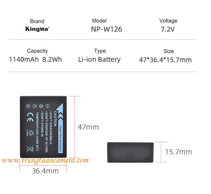 Pin Kingma cho Fujifilm W126 / W126s dung lượng 1140mAh: giá 250.000 vnđ