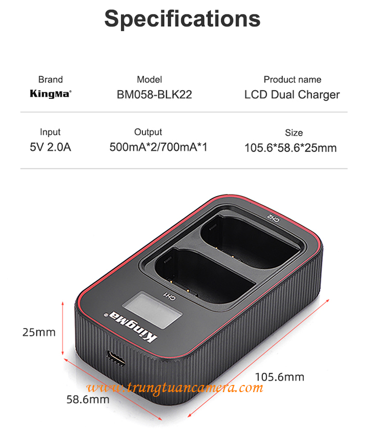 Bộ pin sạc đôi Version 3 Kingma for Panasonic BLK22 dung lượng 2000mAh có sẵn hàng tại Trung Tuấn Camera - Mobile/Zalo: 0983009761