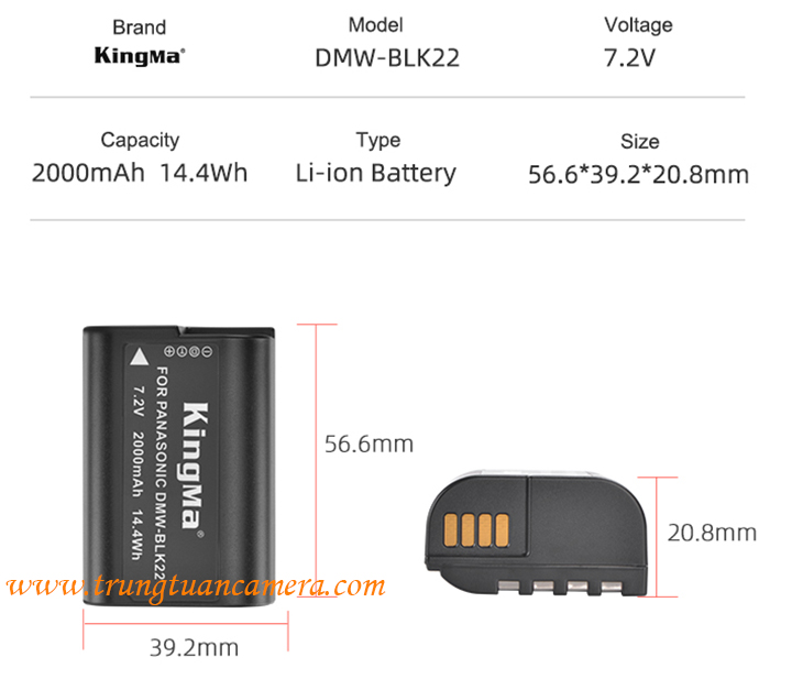 Pin Kingma cho Panasonic DMW-BLK22 dung lượng 2000mAh: giá 380.000 vnđ