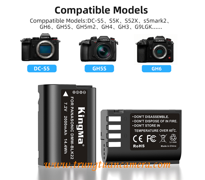 Pin & sạc Kingma for Panasonic DMW-BLK22 có thể dùng thay thế cho các mã pin, sạc máy ảnh Panasonic sau: