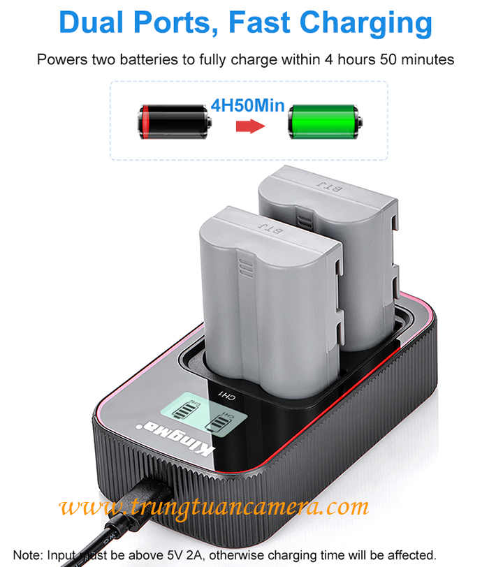 Bộ 2 pin 1 sạc đôi Ver 3 Kingma for Nikon EL3e dung lượng 1600mAh - Có tách set bán lẻ