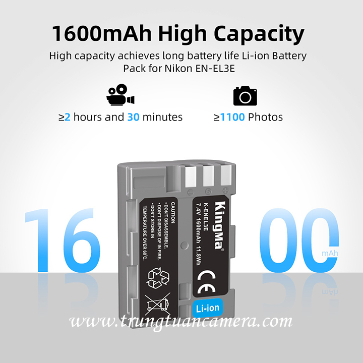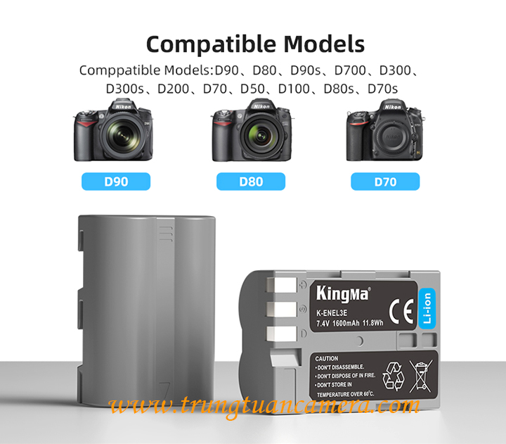 Pin máy ảnh Kingma for Nikon EN-EL3e, dùng cho máy ảnh Nikon ->-> D90, D80,D90s, D700, D300, D300s, D200, D70, D50, D100, D80s, D70s...