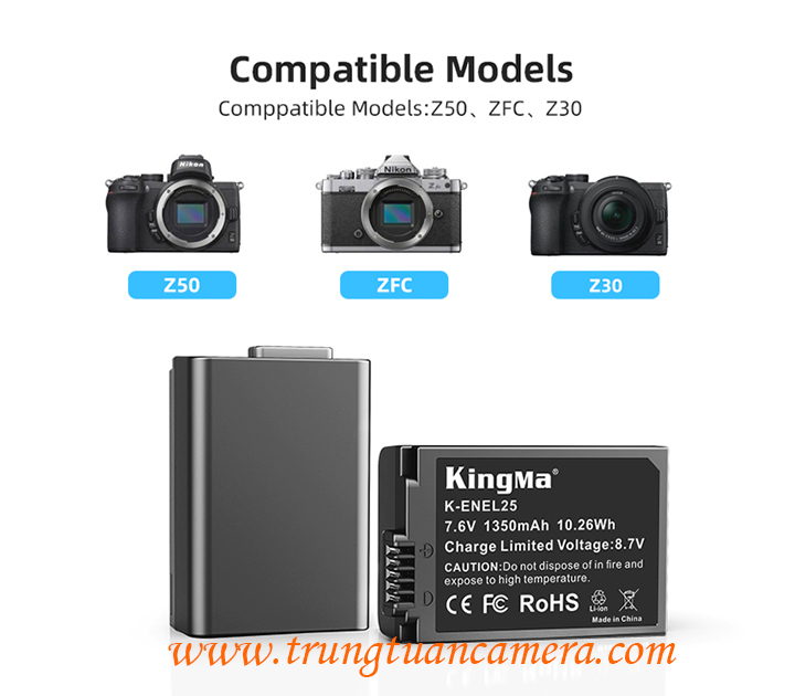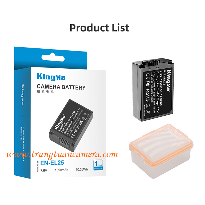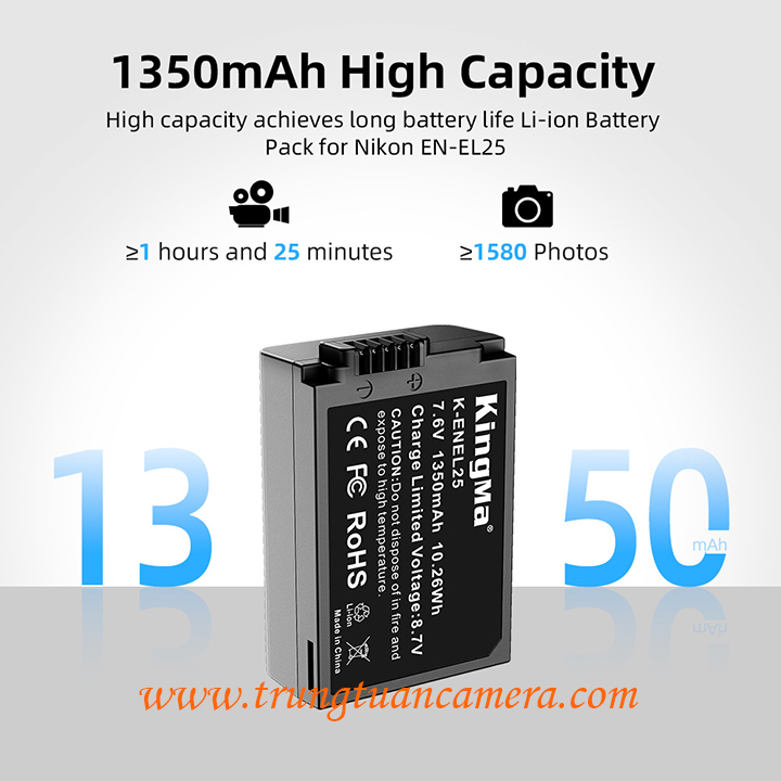 Pin máy ảnh Kingma for Nikon EN-EL25 dung lượng 1350mAh có sẵn hàng tại Trung Tuấn Camera - Mobile/Zalo: 0983009761.
