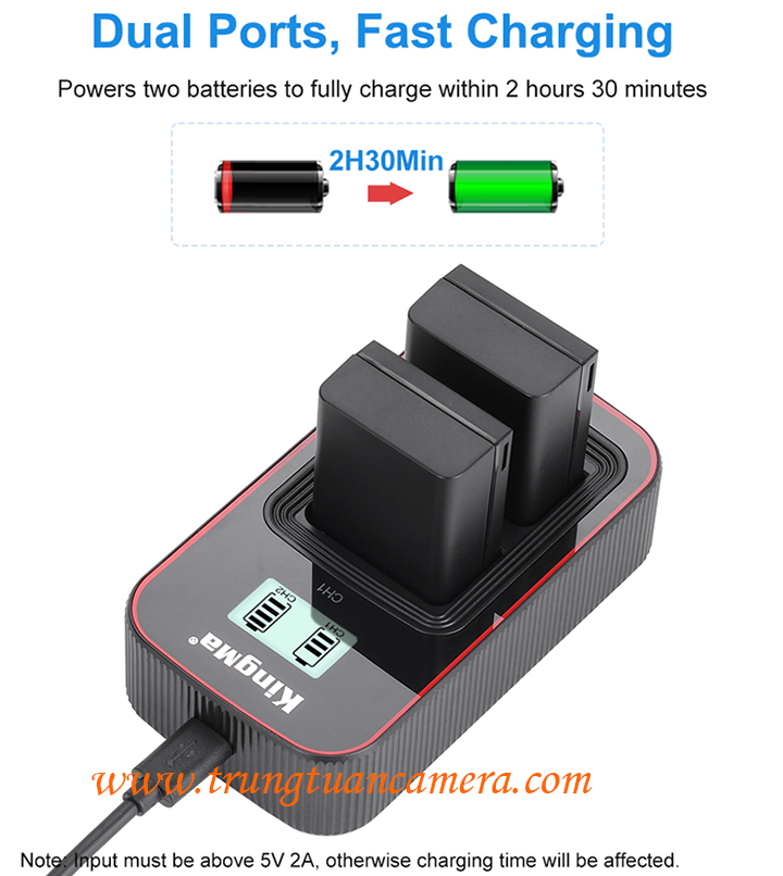 Sạc nhanh Kingma Ver 3 - Đủ mã sạc đôi màn hình LCD cho các loại pin máy ảnh, máy quay