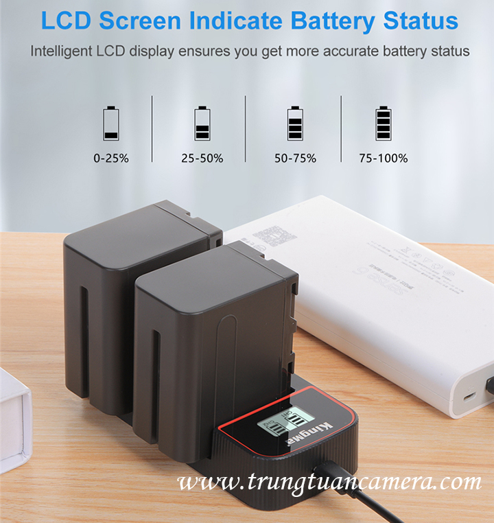 Bộ 1 pin Kingma for Sony F970 dung lượng 6600mAh + 1 sạc nhanh màn hình LCD Ver 3 Kingma for Sony F970 (đã kèm cáp sạc Type C): giá 730.000 vnđ ->-> Tặng kèm hộp đựng pin
