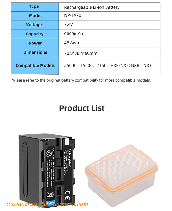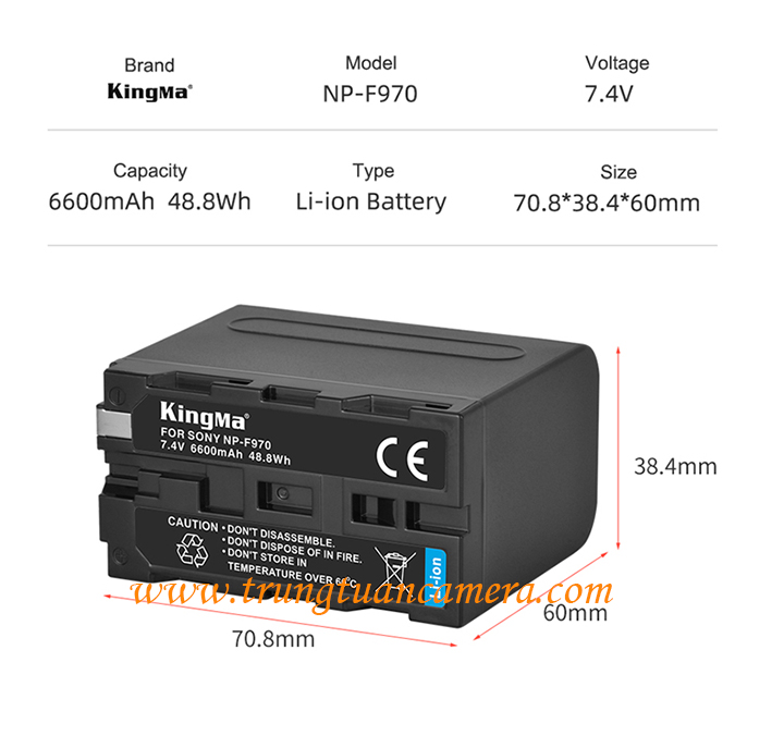 Pin Kingma for Sony NP-F970 dung lượng 6600mAh - Pin sạc máy quay phim chính hãng Kingma F970 dùng cho máy quay phim, các loại đèn LED... có sẵn hàng tại Trung Tuấn Camera - Mobile/Zalo: 0983009761.