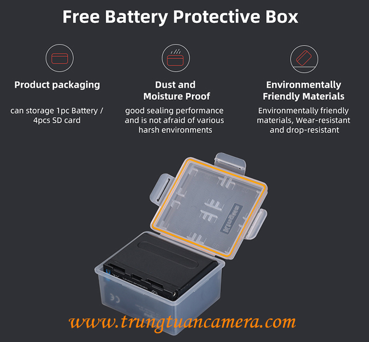 Cả bộ 2 pin Kingma for Sony F970 dung lượng 6600mAh + 1 sạc nhanh màn LCD Ver 3 Kingma for Sony F970 (đã kèm cáp sạc Type C): giá 1.180.000 vnđ ->-> Tặng kèm 2 hộp đựng pin