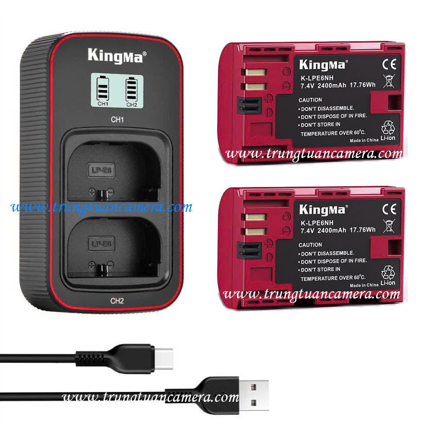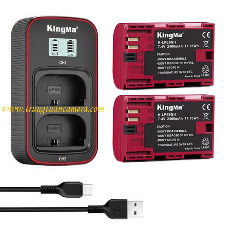 Kingma for Canon LP-E6 / LP-E6NH - Bộ 2 pin đỏ dung lượng cao 2400mAh + 1 sạc nhanh BM058
