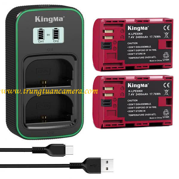 Kingma for Canon LP-E6 / LP-E6NH - Bộ 2 pin đỏ dung lượng cao 2400mAh + 1 sạc nhanh BM058