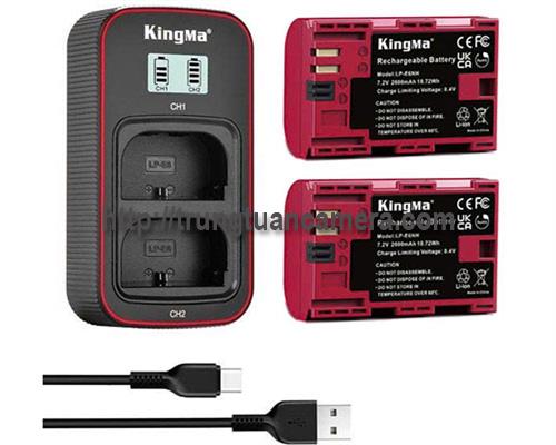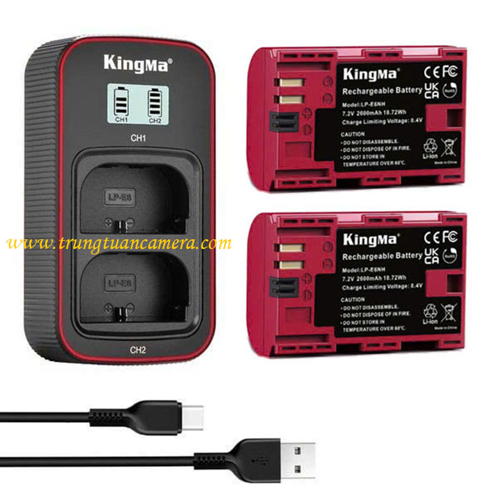 Kingma for Canon LP-E6NH - Bộ 2 pin đỏ dung lượng cao 2600mAh + 1 sạc nhanh BM058