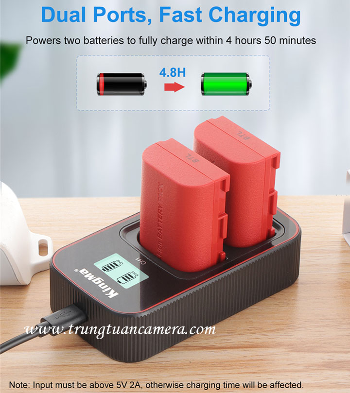 Kingma for Canon LP-E6P - Bộ 2 pin dung lượng cao 2400mAh + 1 sạc đôi siêu nhanh BM058Q