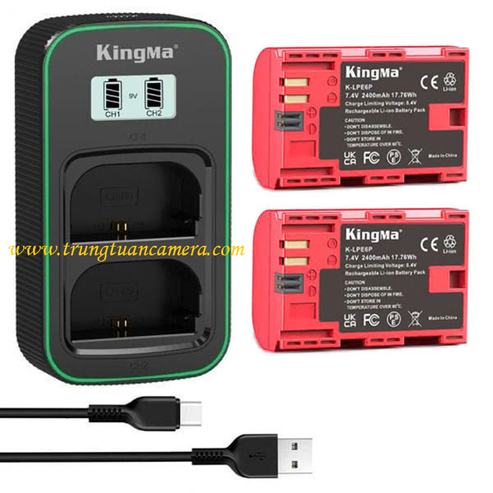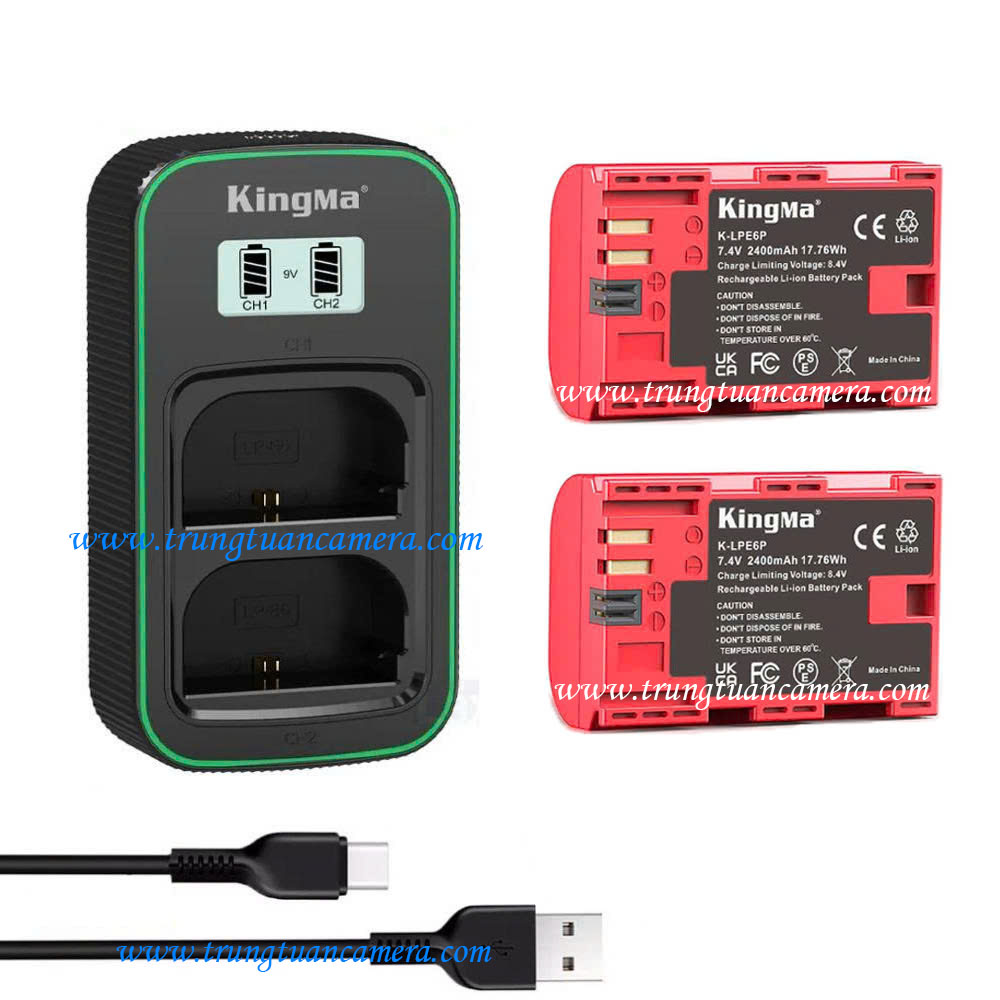 Kingma for Canon LP-E6P - Bộ 2 pin đỏ dung lượng cao 2400mAh + 1 sạc nhanh BM058