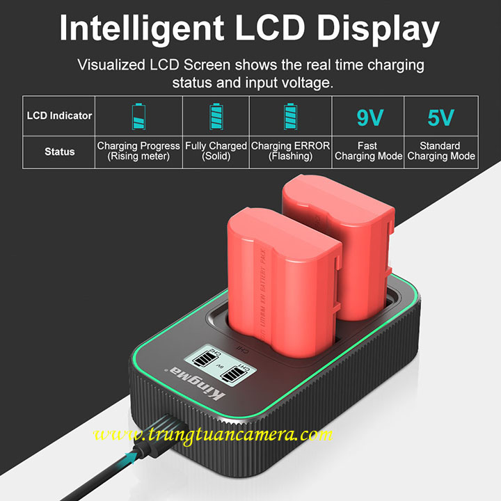 Pin sạc máy ảnh Kingma for Nikon EL15 / EL15NH - Bộ 2 pin dung lượng cao 2400mAh màu đỏ + 1 sạc đôi siêu nhanh BM058Q (sạc viền xanh) - Có tách set bán lẻ - Trung Tuấn Camera - Mobile/Zalo: 0983009761.