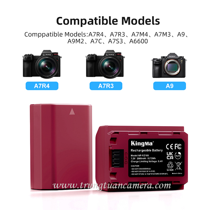 Pin Kingma for Sony FZ-100 dùng được cho các dòng máy sau của Sony: