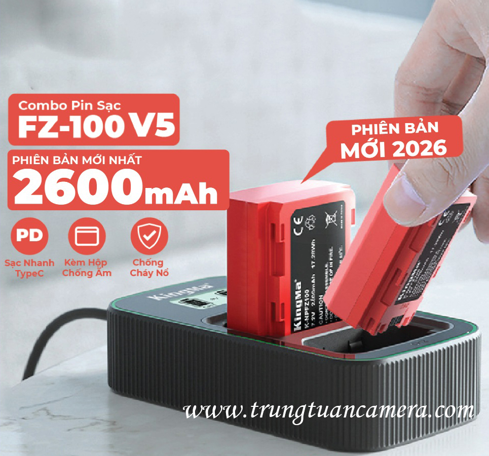Kingma for Sony FZ100 - Bộ 2 pin máy ảnh Kingma màu đỏ, dung lượng cao 2600mAh + 1 sạc đôi sạc nhanh BM058 for Sony FZ100 có sẵn hàng tại Trung Tuấn Camera - Có tách set bán lẻ - Trung Tuấn Camera - Mobile/Zalo: 0983009761.