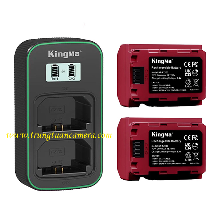 Pin sạc máy ảnh Kingma for Sony FZ100 - Bộ 2 pin dung lượng cao 2600mAh màu đỏ + 1 sạc đôi siêu nhanh BM058Q - Có tách set bán lẻ - Trung Tuấn Camera - Mobile/Zalo: 0983009761.