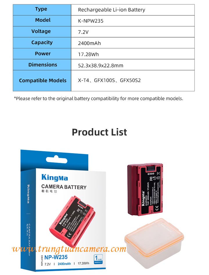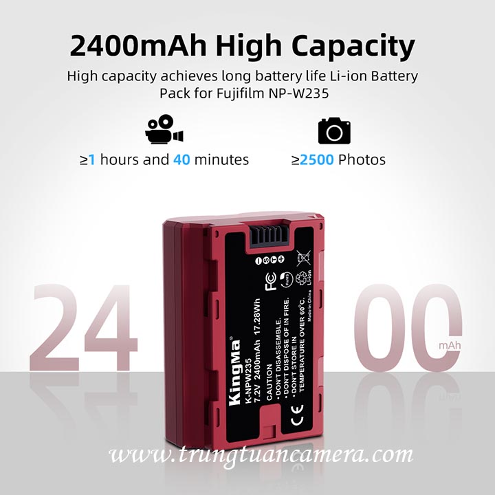 Pin máy ảnh dung lượng cao chính hãng Kingma for Fujifilm W235 dung lượng 2400mAh có sẵn hàng tại Trung Tuấn Camera - Mobile/Zalo: 0983009761.