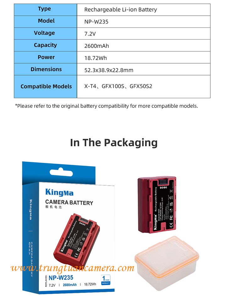 Pin máy ảnh dung lượng cao chính hãng Kingma for Fujifilm W235 dung lượng 2600mAh - Trung Tuấn Camera - Mobile/Zalo: 0983009761.