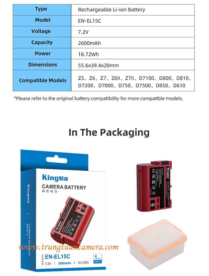Pin máy ảnh dung lượng cao Kingma for Nikon EL15C dung lượng 2600mAh - Trung Tuấn Camera - Mobile/Zalo: 0983009761.