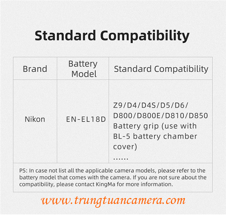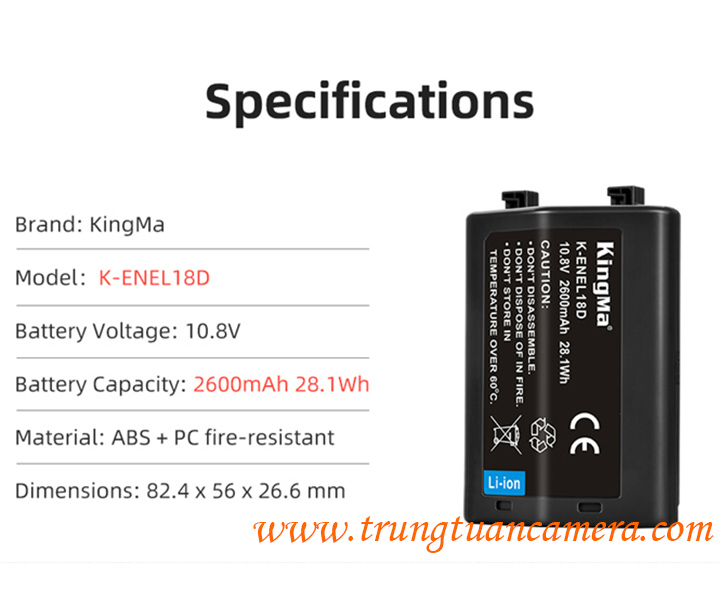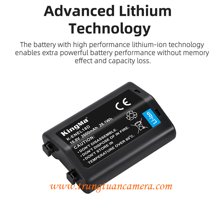 Pin máy ảnh dung lượng cao Kingma for Nikon EN-EL18D dung lượng 2600mAh có sẵn hàng tại Trung Tuấn Camera - Mobile/Zalo: 0983009761.