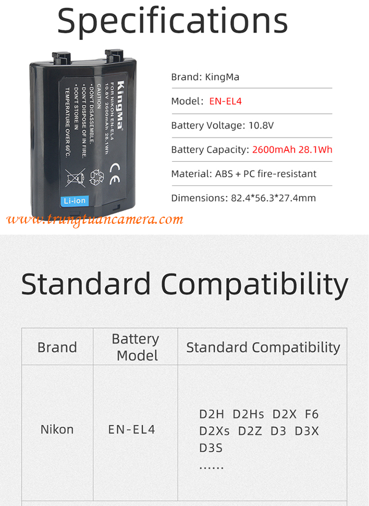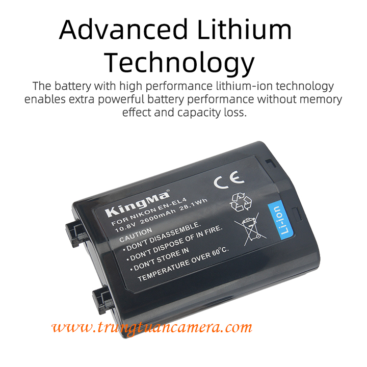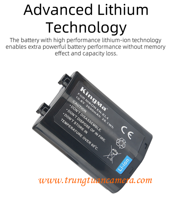 Pin máy ảnh dung lượng cao Kingma for Nikon EN-EL4 / EL4A dung lượng 2600mAh có sẵn hàng tại Trung Tuấn Camera - Mobile/Zalo: 0983009761.