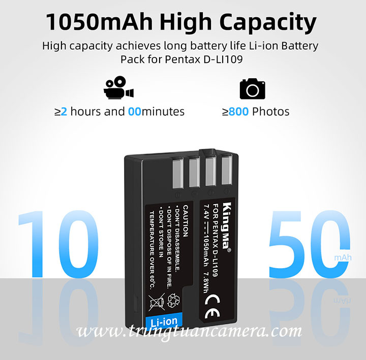 Pin máy ảnh Kingma cho Pentax D-Li109 dung lượng 1050mAh: giá 315.000 vnđ