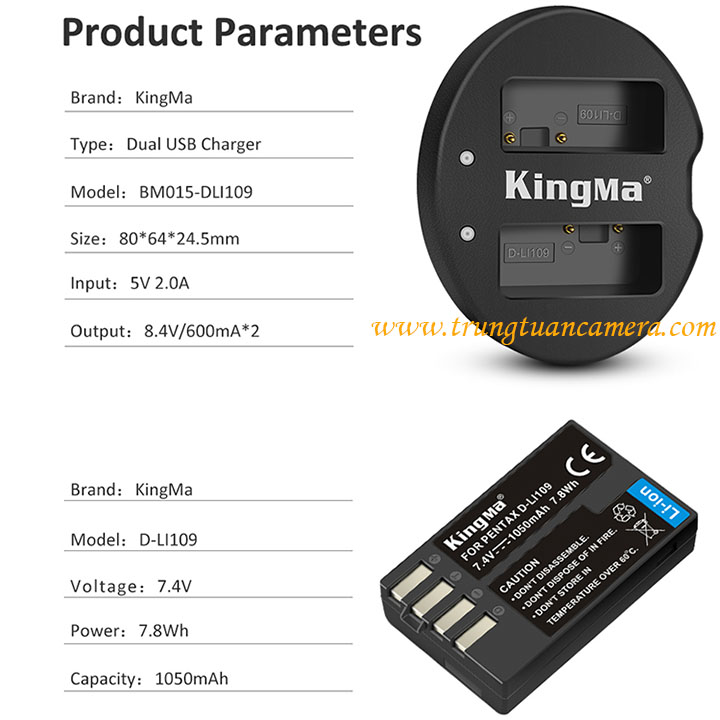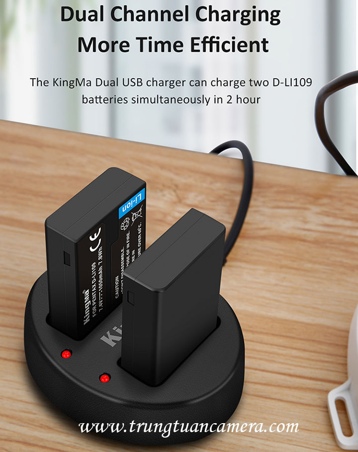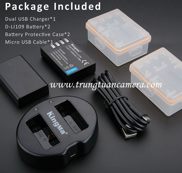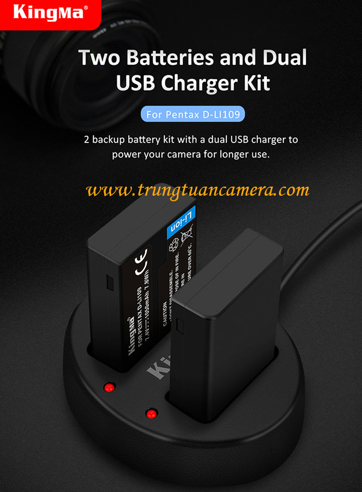 Bộ 2 pin 1 sạc đôi Kingma for Pentax D-LI109 dung lượng 1050mAh có sẵn hàng, có tách set bán lẻ - Trung Tuấn Camera - Mobile/Zalo: 0983009761.