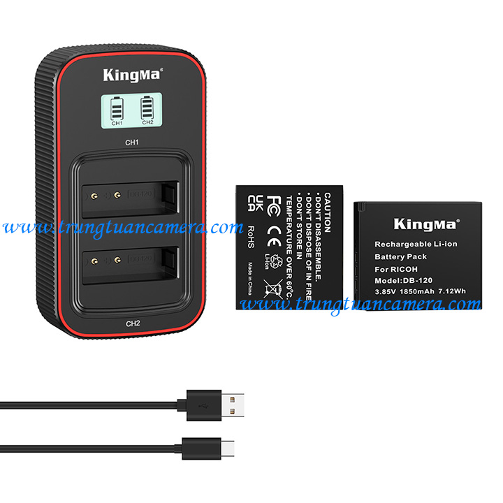 Cả bộ 2 pin Kingma for Ricoh DB-120 dung lượng 1850mAh + 1 sạc đôi Kingma BM058 cho Ricoh DB-120 (đã kèm cáp sạc Type C): giá 695.000 vnđ
