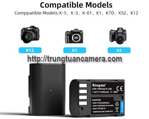 Pin Kingma for Pentax D-Li90 dùng được cho các dòng máy ảnh sau của Pentax: