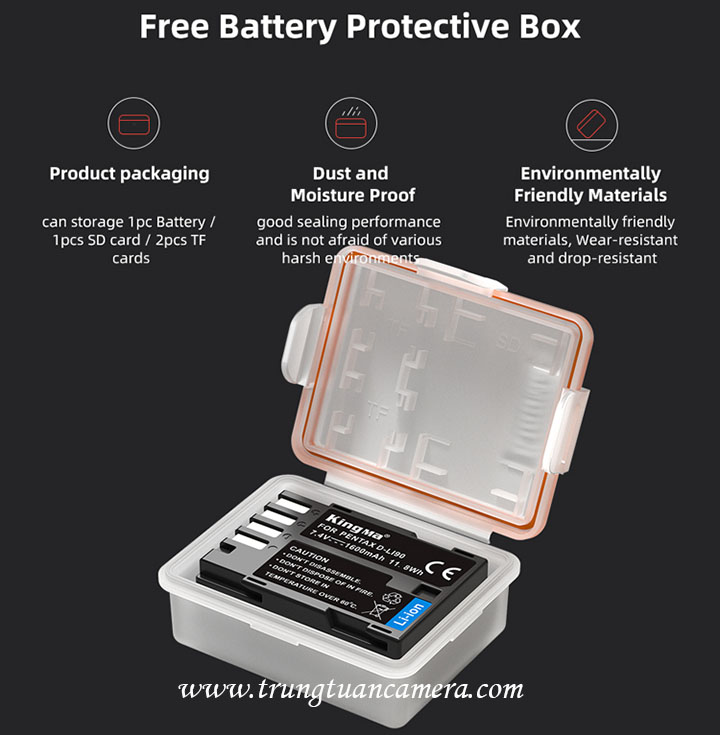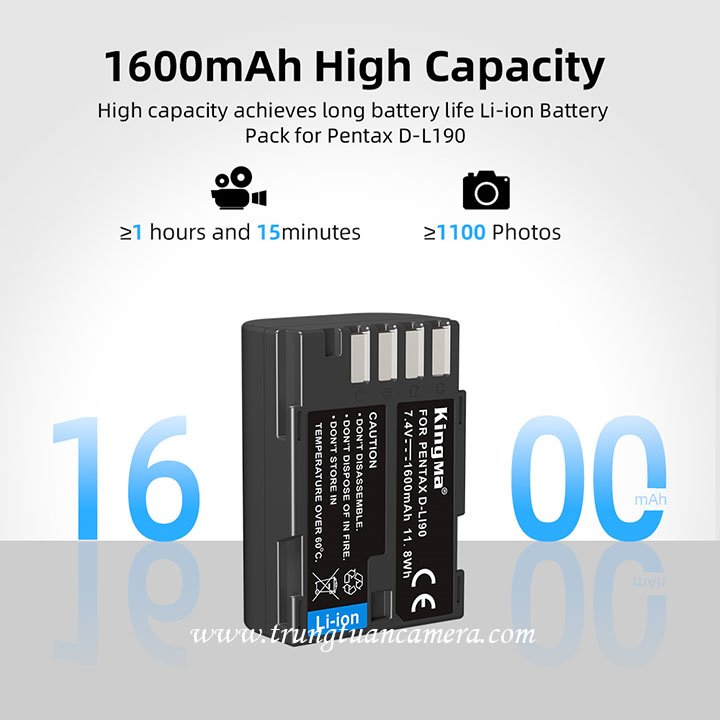 Pin máy ảnh Kingma cho Pentax D-Li90 dung lượng 1600mAh: giá 295.000 vnđ