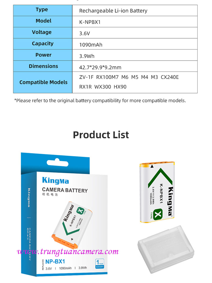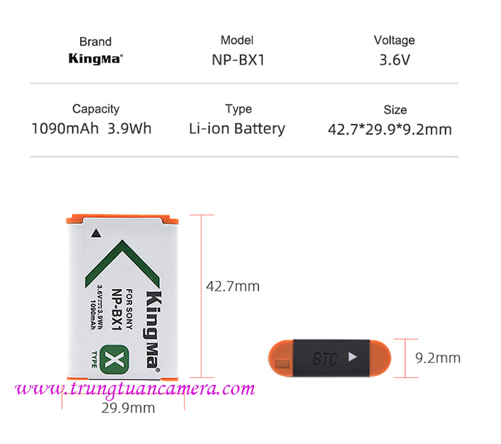 Pin máy ảnh, máy quay Kingma for Sony BX1 dung lượng 1090mAh có sẵn hàng tại Trung Tuấn Camera - Mobile/Zalo: 0983009761.