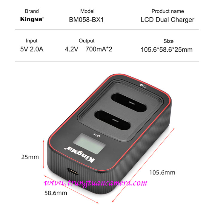 Sạc nhanh Ver 3 Kingma BM058 - Đủ mã sạc đôi màn hình LCD cho các loại pin máy ảnh, máy quay