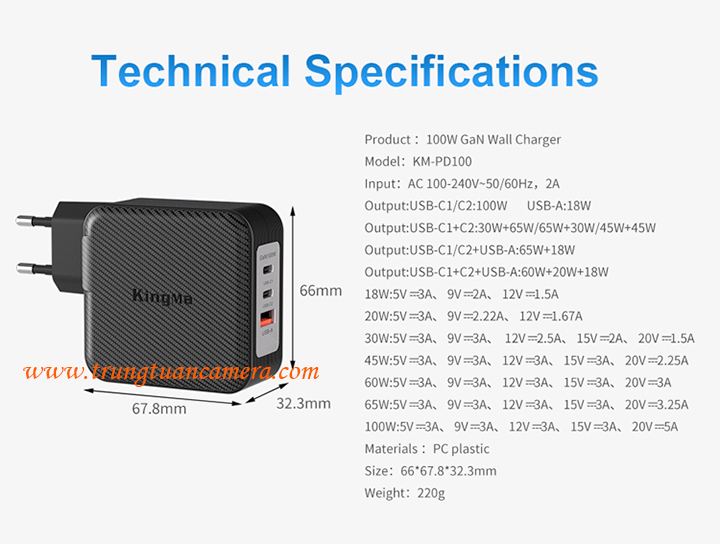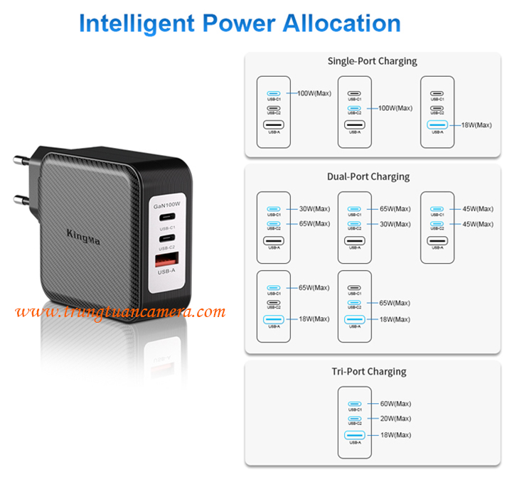 Củ sạc nhanh công suất lớn KingMa GaN Power Charger 100W Fast Charging Adapter PD3.1 PD100W dùng cho Laptop / Điện thoại / iPad - Trung Tuấn Camera - Mobile/Zalo: 0983009761