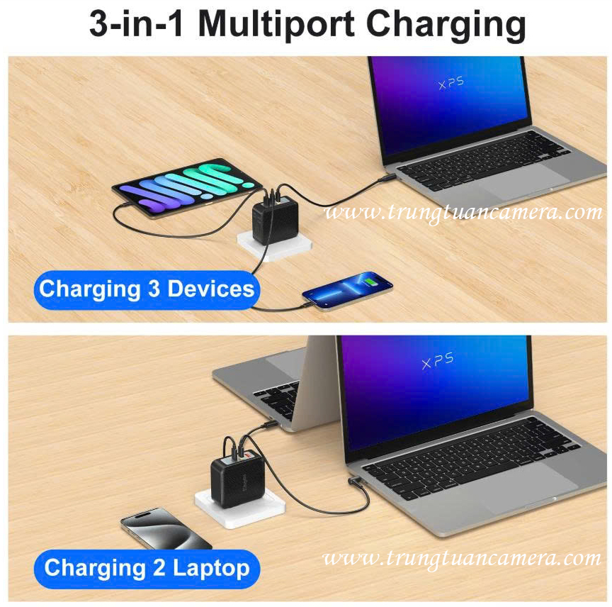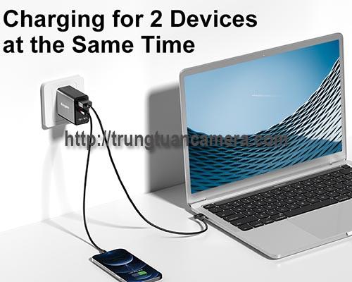 Củ sạc nhanh đa năng công suất lớn KingMa GaN Power Charger 140W Fast Charging Adapter PD3.1 PD140W: có 3 cổng kết nối: USB-A và 2 cổng USB-C