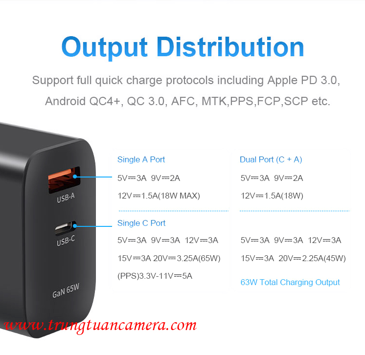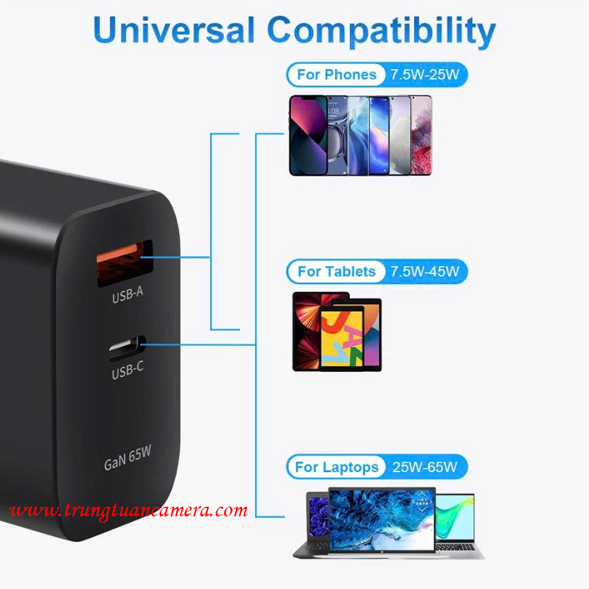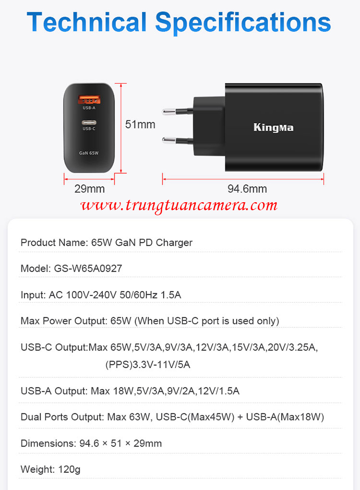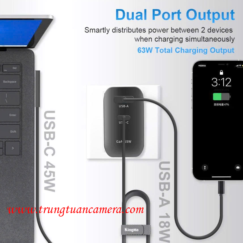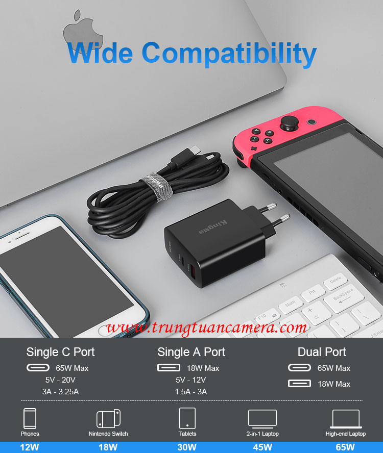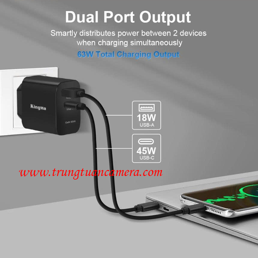 Củ sạc nhanh công suất lớn KingMa GaN Power Charger 65W Fast Charging Adapter PD3.1 PD 65W dùng cho Laptop / Điện thoại / iPad - Trung Tuấn Camera - Mobile/Zalo: 0983009761