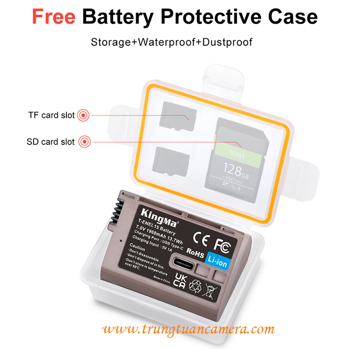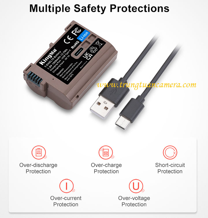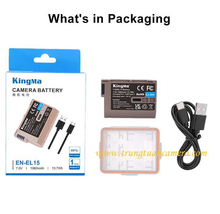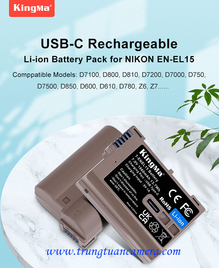 Pin máy ảnh Kingma sạc trực tiếp USB-C input cho Nikon EL15 dung lượng 1960mAh, có cổng sạc Type-C trực tiếp trên pin - Trung Tuấn Camera - Mobile/Zalo: 0983009761.