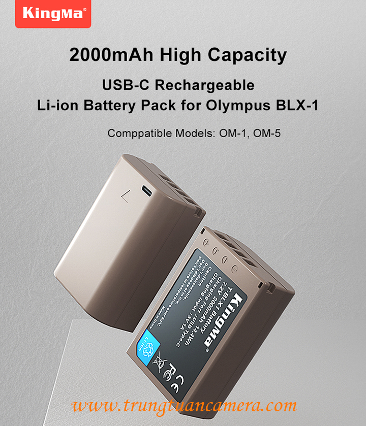 Pin máy ảnh Kingma sạc trực tiếp USB-C input cho Olympus BLX-1, có cổng sạc Type-C trực tiếp trên pin - Trung Tuấn Camera - Mobile/Zalo: 0983009761