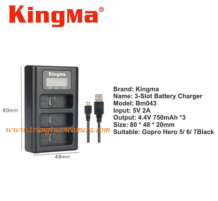 Sạc nhanh 3 pin màn hình LCD Kingma cho Gopro 5/6/7/8 - Kingma BM043 Charger có sẵn hàng tại Trung Tuấn Camera - Mobile/Zalo: 0983009761.