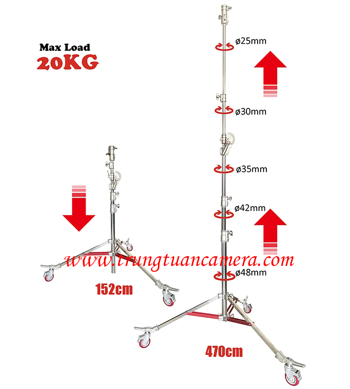 Chân đèn có thể gấp ngược thu gọn 49cm cao 2m2 đốt xoáy