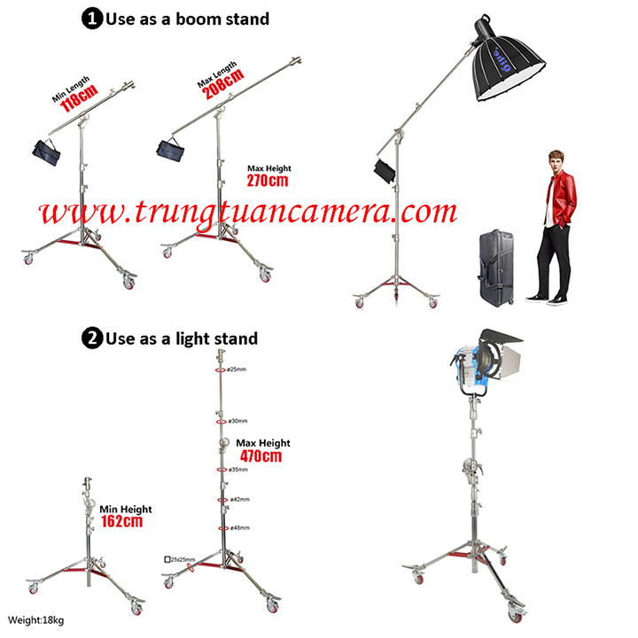 Combo tay boom đèn tay treo đèn + chân đèn cao 2m