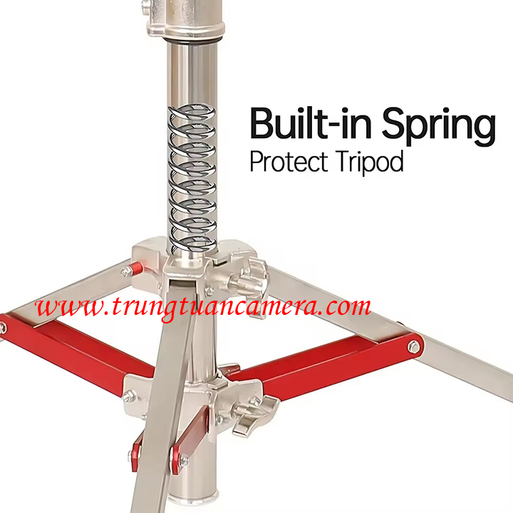 Mỗi ống đều có giảm chấn lò xo phía trong, giúp bảo vệ thiết bị đèn và máy an toàn khi gắn lên chân. Có 3 bánh xe giảm chấn, giúp di chuyển đèn cơ động và nhẹ nhàng. Thích hợp cho các phòng studio chuyên nghiệp. Thiết kế chân đế gấp gọn dễ dàng di chuyển cho các concept di động.