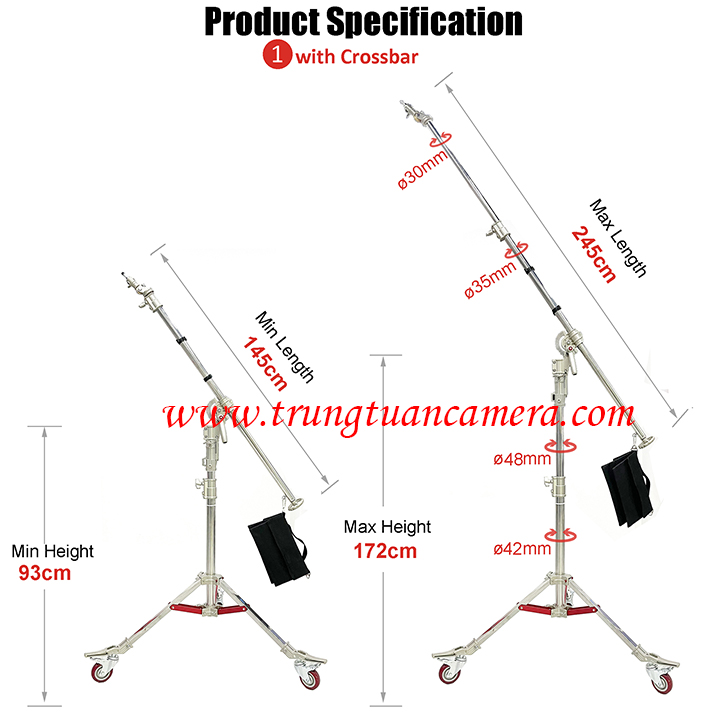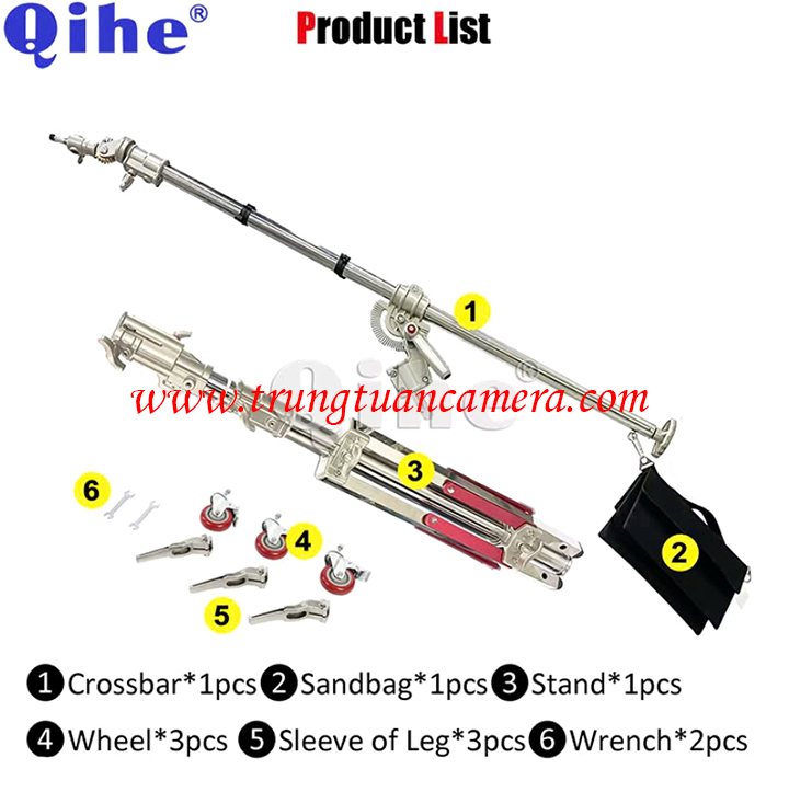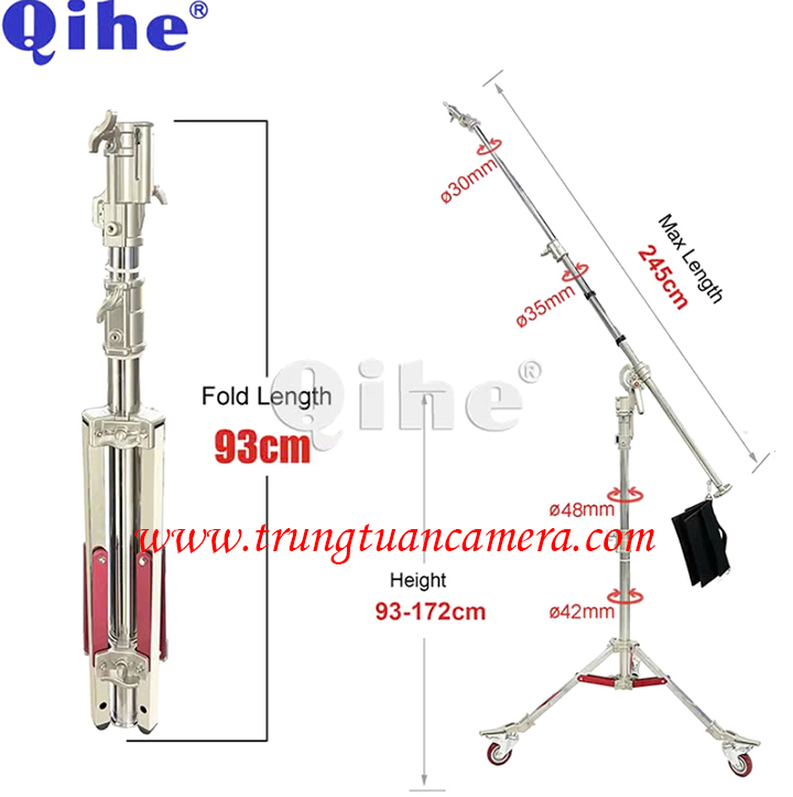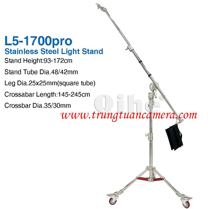 Chân đèn Super Boom Light Stand inox Qihe L5-1700 Pro - Chân boom cẩu đèn có bánh xe cường lực hàng chính hãng QIHE có sẵn hàng tại Trung Tuấn Camera - Mobile/Zalo: 0983009761.
