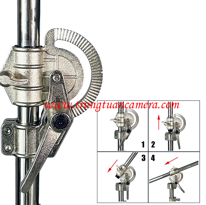 Tay boom bao gồm 02 đoạn được rút tùy chỉnh linh hoạt từ 118cm đến 215cm. Thích hợp vít 1/4 & 3/8