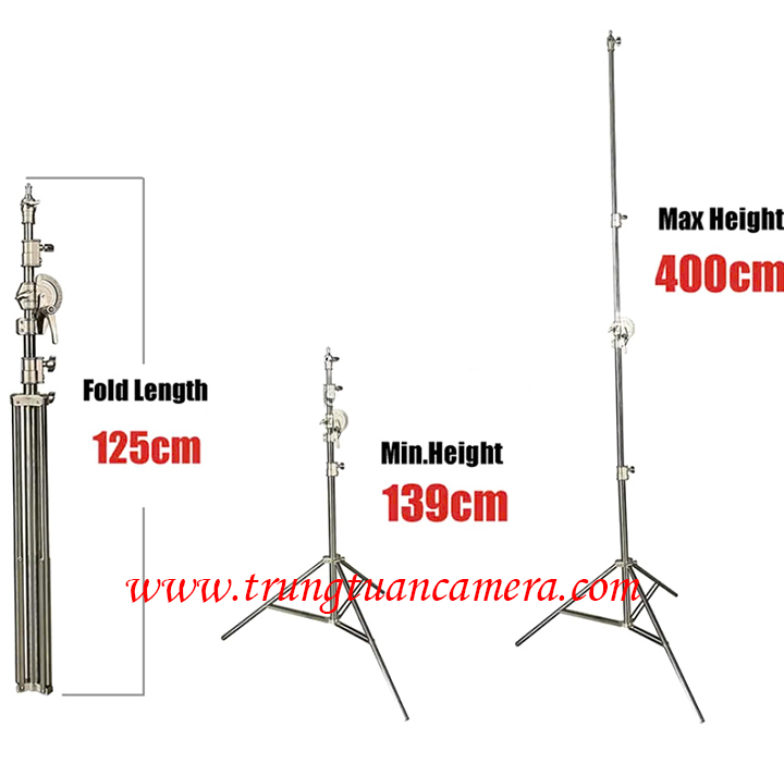 Chân đèn inox chất lượng cao Light Stand QIHE J388S / J388S Pro New chiều cao 4m
