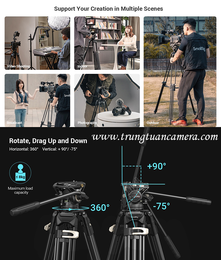 Chân máy quay SmallRig AD-01 Heavy-Duty Fluid Head Tripod 3751 / 3751B có sẵn hàng tại Trung Tuấn Camera - Mobile: 0983009761.
